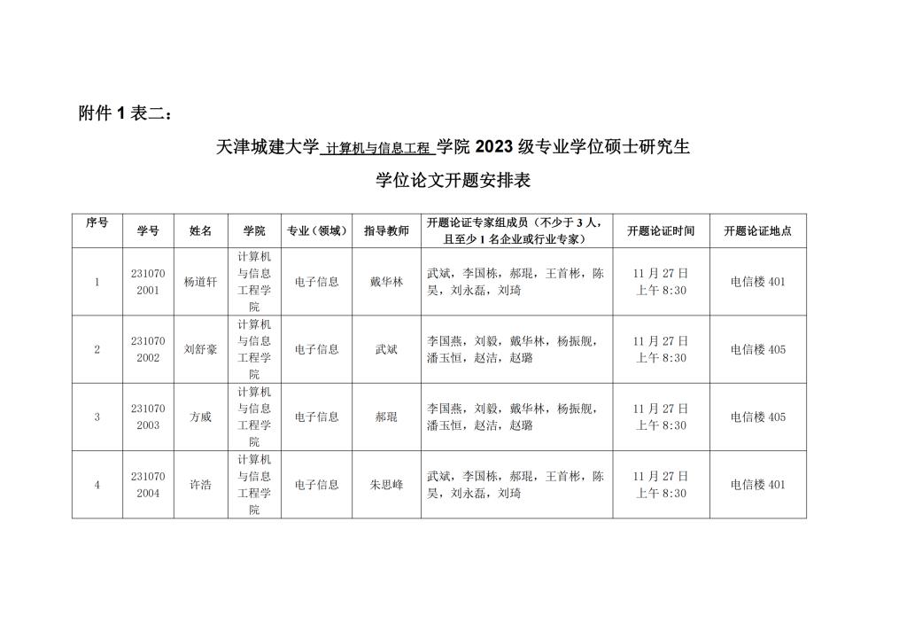 suncitygroup计算机与信息工程 公司 2023 级专业学位硕士研究生学位论文开题安排表