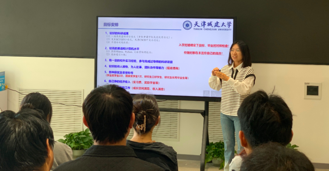新入职的青年教师张明辉博士从自身求学经历出发,分享了读研期间详细规划,结合当前就业形势与现场同学进行互动交流,同时向同学们推荐了一些科研实用工具,并针对科研问题总结了“科研工作六步曲”。他勉励同学们在科研路上要有认真踏实的态度、迎难而上的品格与坚持不懈的努力。
