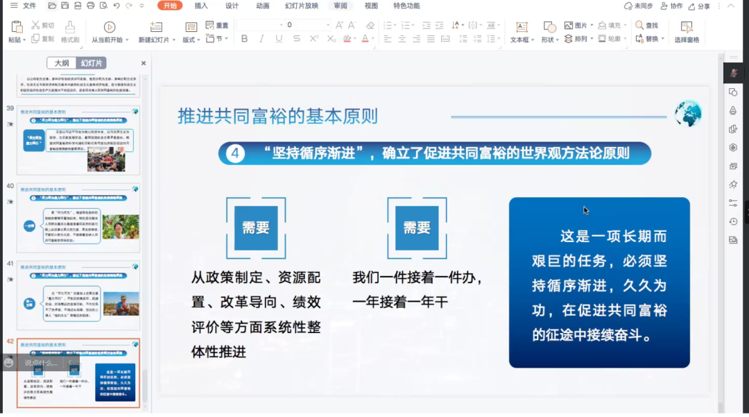 张尧老师详细讲述了共同富裕的概念探析、中国共产党的探索路程以及共同富裕的推进原则。共同富裕是社会主义的本质要求,是中国式现代化的重要特征,是习近平新时代中国特色社会主义思想的重要内容。最后张尧老师指出,共同富裕是一项长期而艰巨的任务,必须坚持循序渐进,久久为功,在促进共同富裕的征途中接续奋斗,希望同学们在人生中的黄金时段努力奋斗,顽强拼搏,学好自己的专业知识,将来为我们的祖国奉献自己的一份力量!