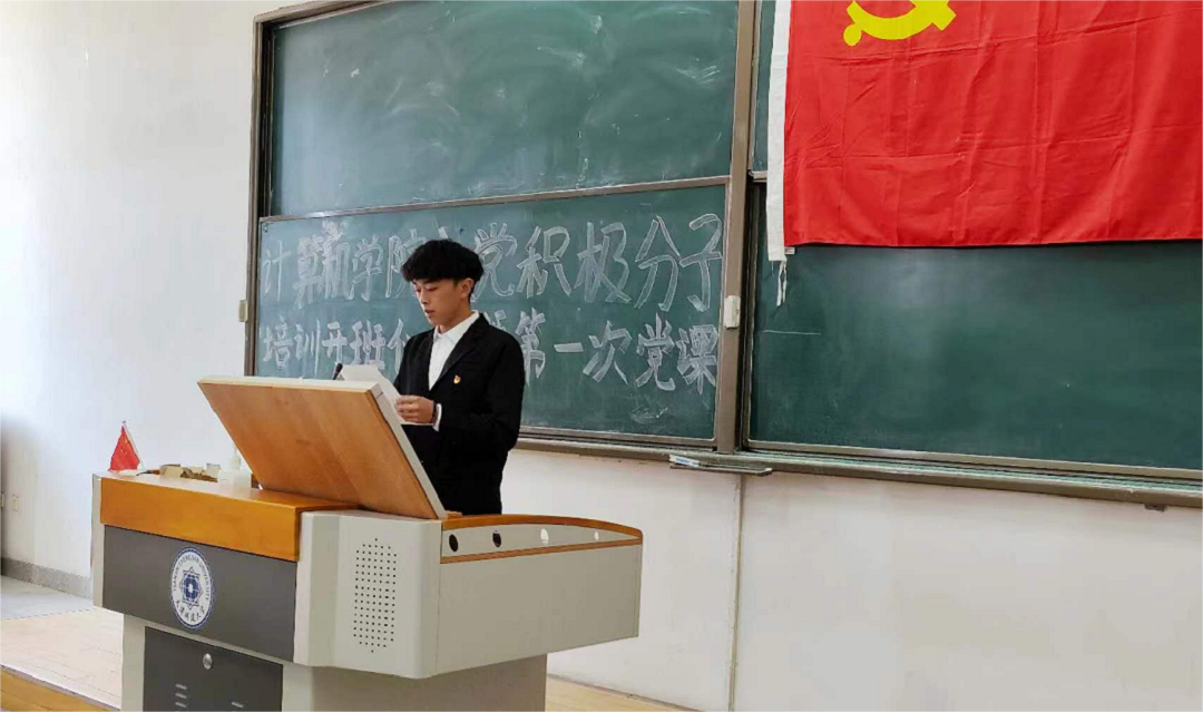 仪式在庄严的国歌声中拉开序幕。首先由党建中心负责人王宏辉向参训学员宣读纪律要求,学员代表冷文林同学进行了发言,他表示作为新时代青年人,要认真学习党的理论知识和实践锻炼,接过担子、接好担子,将自己的命运同国家发展紧密联系,融小我于时代大潮之中,发挥应有的力量。