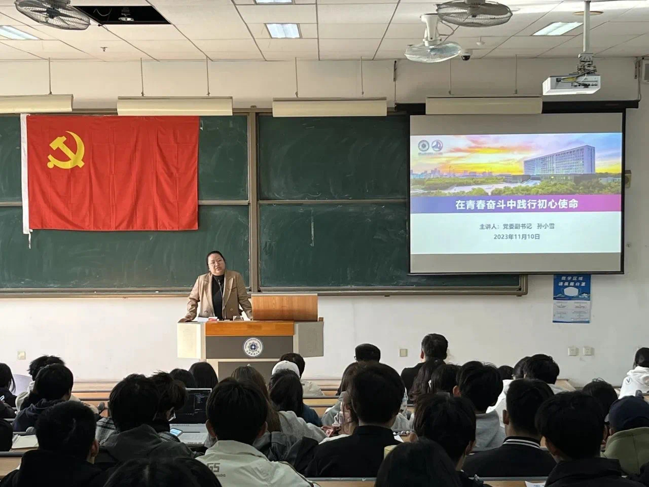 11月10日,孙小雪老师以“在青春奋斗中践行初心使命”为主题,为员工讲授主题党课。她强调了端正入党动机的重要性,引导员工深入思考“为什么要加入中国共产党”“什么是正确的入党动机”,并对员工提出三点要求:一是要在学业上严格要求自己,争取做到学有所成、学有所获、学有所用;二是要有主动担当的意识和责任,践行服务宗旨,努力“走在先、干在前、作表率”;三是要争做“知识足、眼界宽、能力强”的青年学子,依靠“不懈奋斗”开启青春岁月,在躬行实践中诠释初心使命。