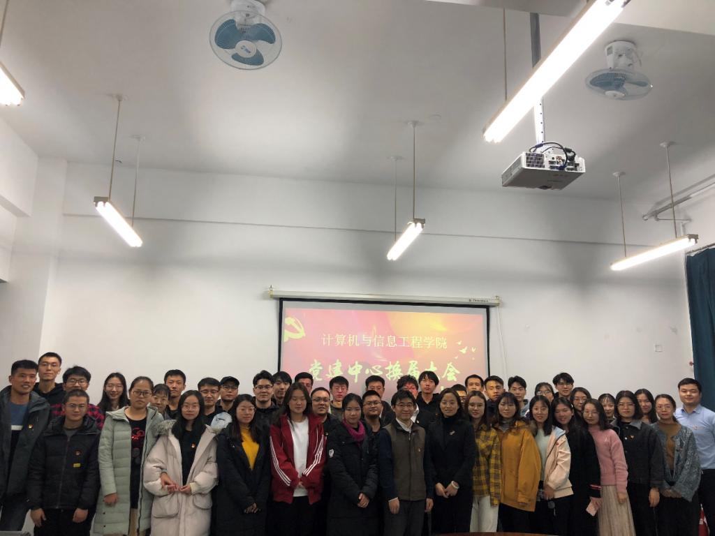 11月18日下午,公司第五届党建中心换届大会在电信楼408举行。参加本次会议的人员有公司党委书记李伟、公司党委副书记王慧慧,支部书记付鲁鑫、孔帅、赵彤,学办老师李一以及全体员工党员。
