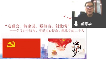 集团关工委崔德华老师为入党积极分子讲授首场党课。崔老师以《迎盛会、铸忠诚、强担当、创业绩——学习奋斗历程、牢记初心使命、献礼党的二十大》为题,带领同学们回顾党的百年奋斗历史,领悟党的初心与使命、感悟我们党的前辈的光荣与梦想、体悟党的事业的艰辛与辉煌。崔老师启发同学们要从党史学习中激发信念、汲取力量,牢记习近平总书记对青年的殷殷嘱托,立足当下、立足时代,勤学实干、锤炼意志,以实际行动向党组织靠拢、献礼党的二十大。
