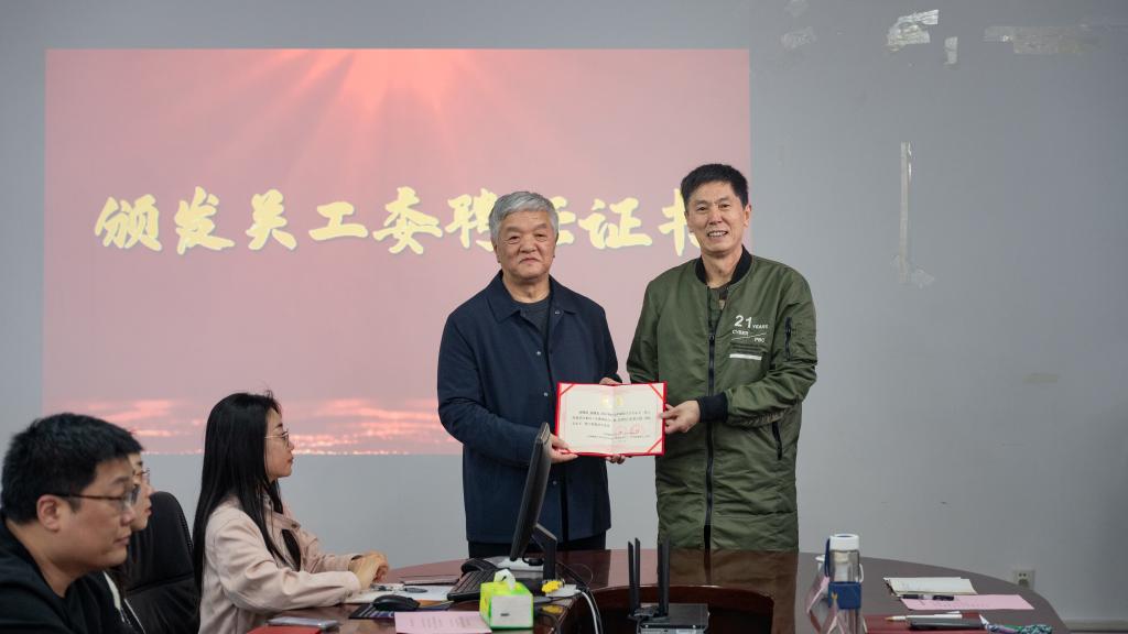 离退休工作处副处长冯志斌为树东经理颁发了关工委委员证书,希望树东经理退休后在关心下一代舞台上发挥优势作用,为教育强国、科技强国建设贡献银发力量。