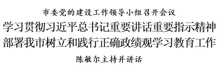 3月2日,市委党的建设工作领导小组召开会议,学习贯彻习近平总书记关于树立和践行正确政绩观的重要讲话和重要指示精神,落实中央党的建设工作领导小组会议精神,审议关于在全市开展树立和践行正确政绩观学习教育的方案,研究部署我市学习教育工作。