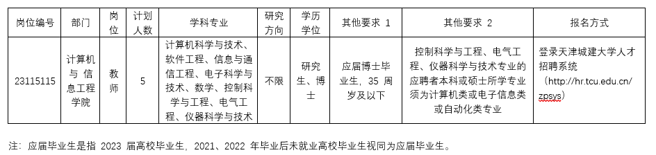 公开招聘方案于2023年1月17日在天津市教委网站(http://jy.tj.gov.cn/)及suncitygroup门户网站(http://www.tcu.edu.cn/)公开招聘专栏发布。具体招聘岗位如下: