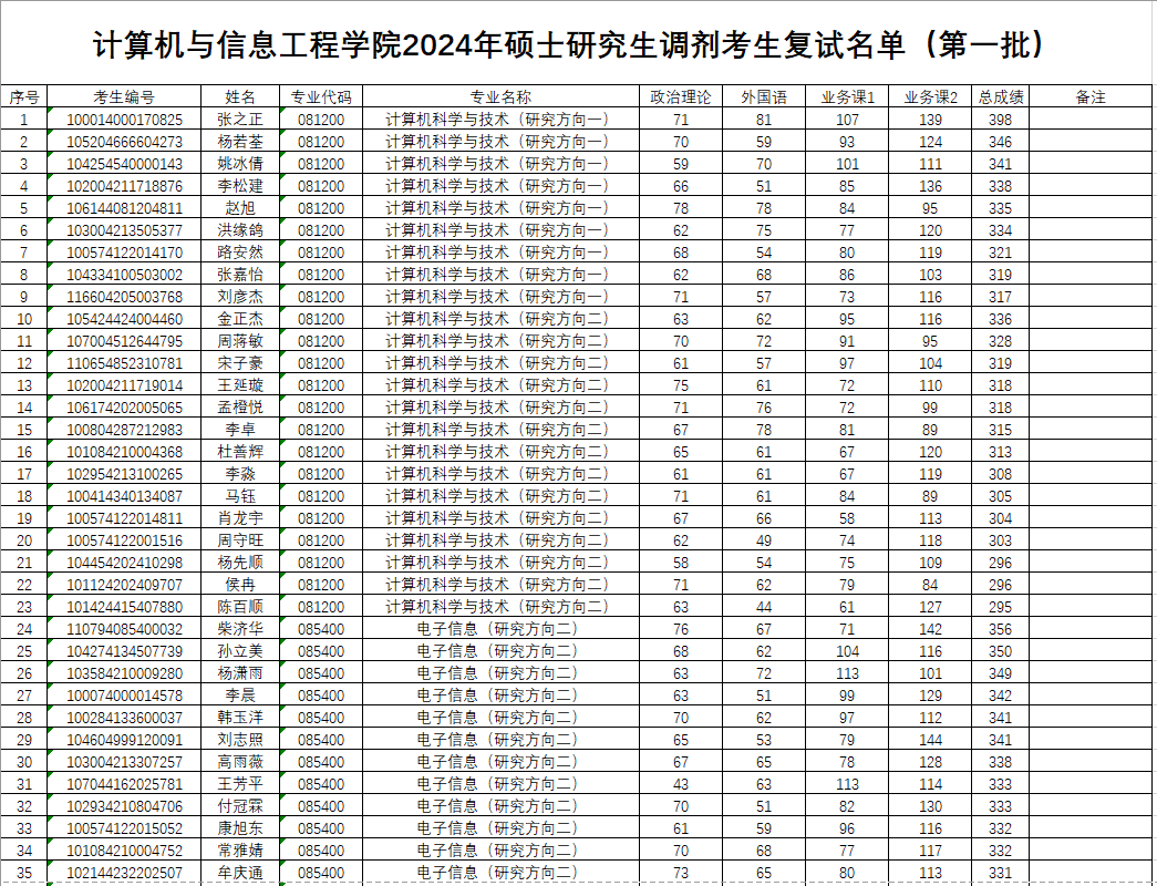 suncitygroup太阳新城2024年硕士研究生调剂考生复试名单(第一批)