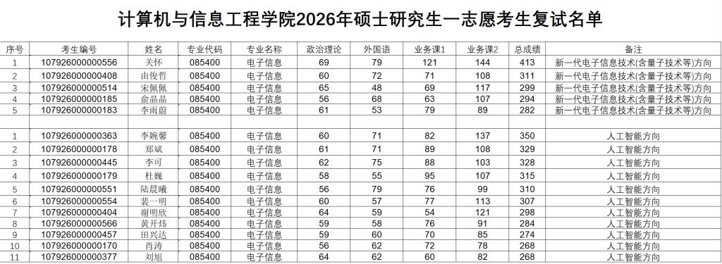 suncitygroup太阳新城2026年硕士研究生一志愿考生复试名单